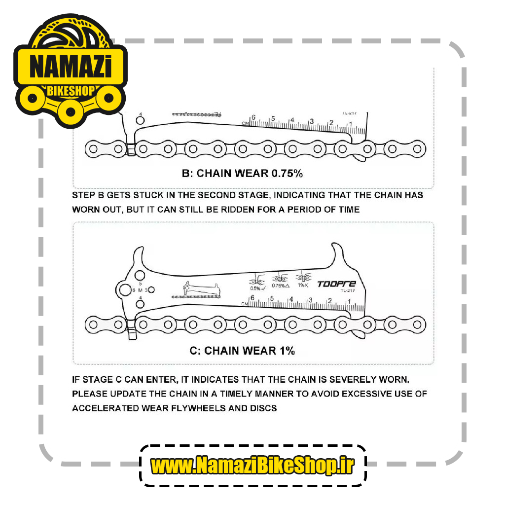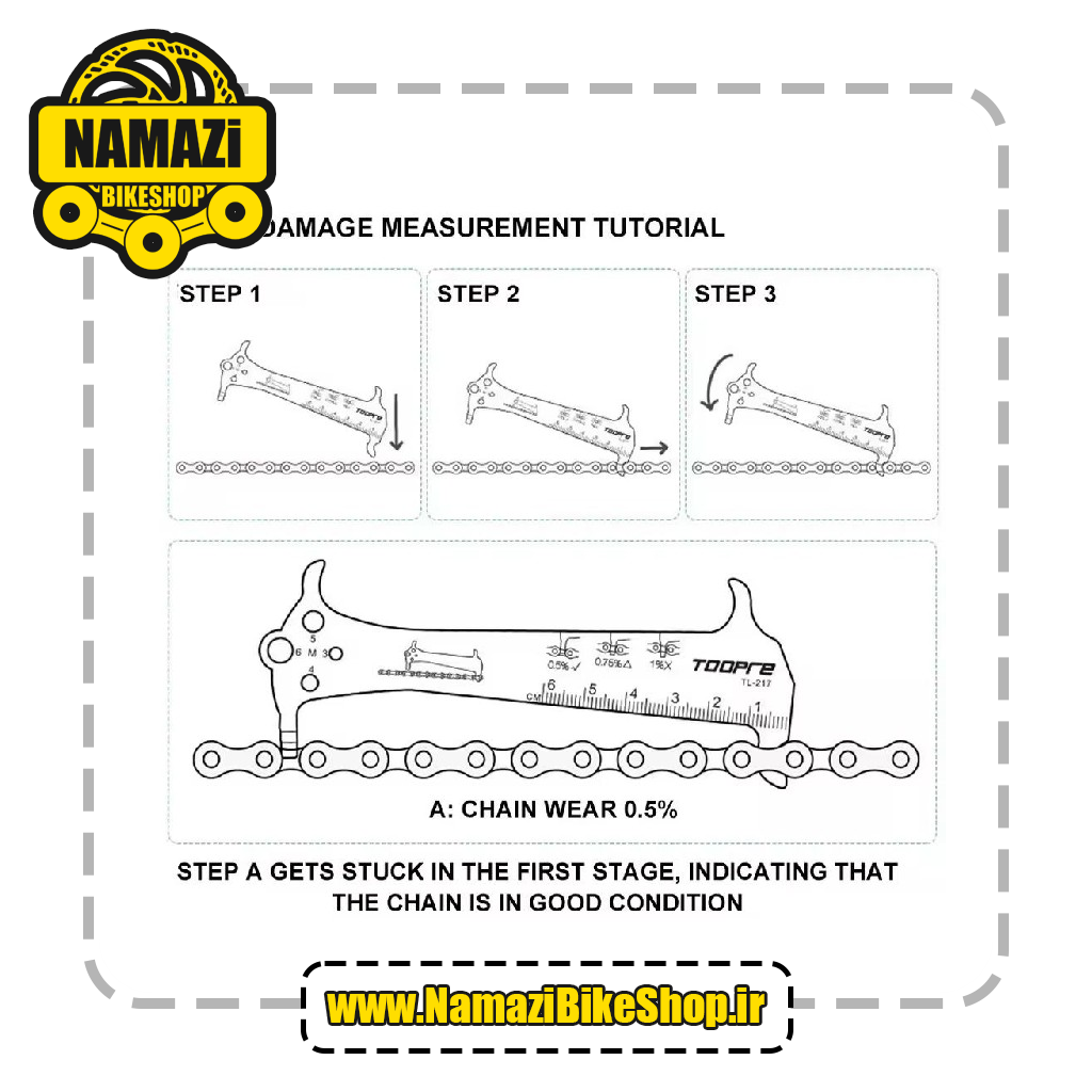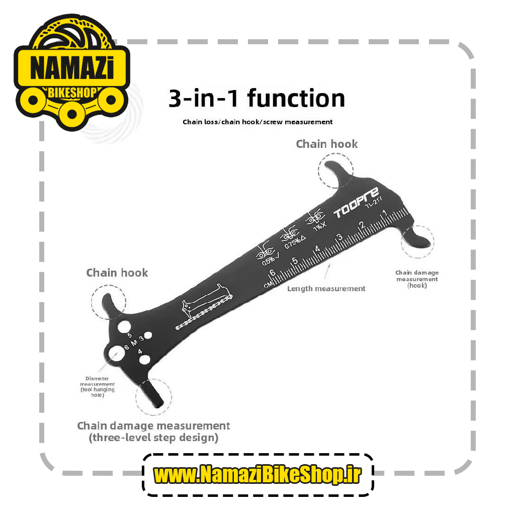 ✅️ وسیله ای کاربردی برای اندازه گیری زنجیر ( پس از سواری طولانی مدت با سرعتی شتابان به چرخ سایشی تبدیل میشود بنابراین این ابزار مفید برای اندازهگیری سریع درجه سایش زنجیر میباشد )