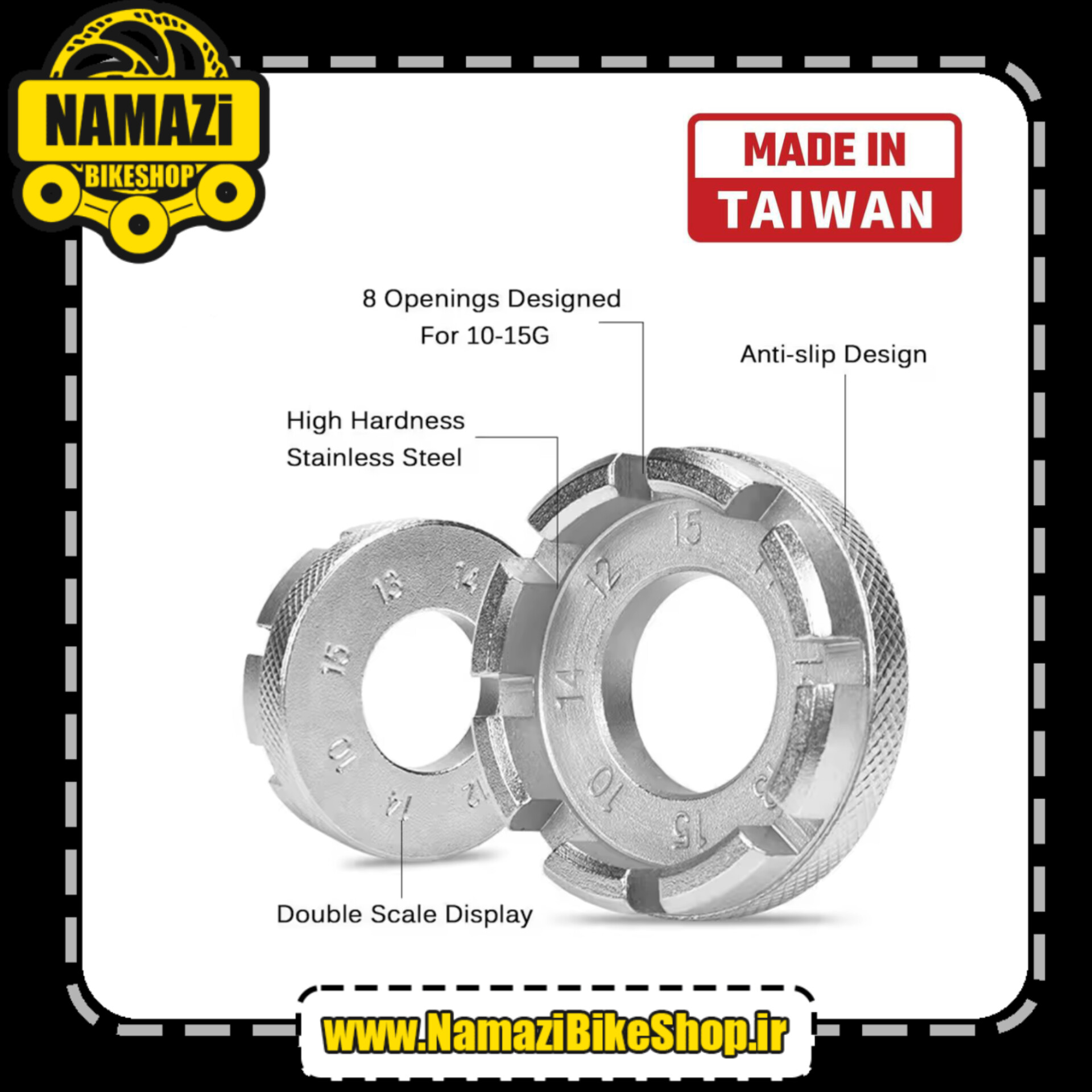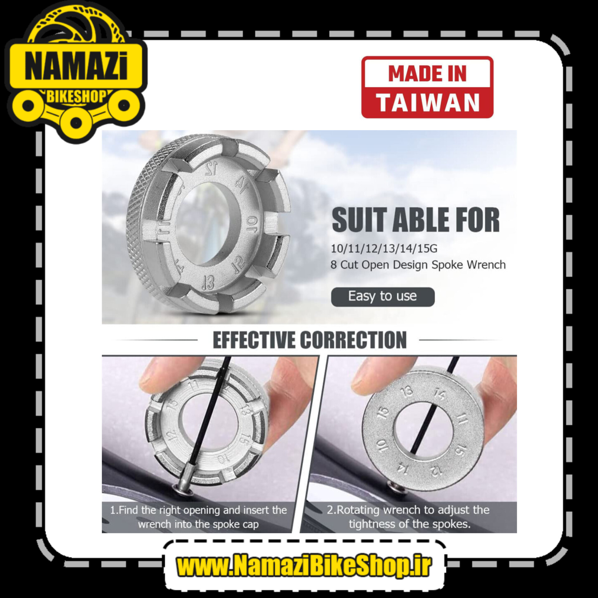 طیف گستردهای از کاربردها: طراحی ۸ شیار. آچار دوچرخه اسپوک برای اکثر دوچرخهها مناسب است، برای تنظیم و سفت کردن پرههای ۱۰G، ۱۱G، ۱۲G، ۱۳G، ۱۴G، ۱۵G مناسب است.