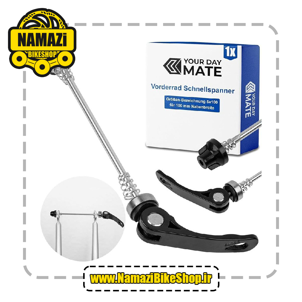 اندازه: اهرم خلاص کن جلو حدود ۱۴۵ میلیمتر است؛ اهرم خلاص کن عقب حدود ۱۷۵ میلیمتر است. مناسب برای همه چرخهای جلو و عقب با محور توخالی.