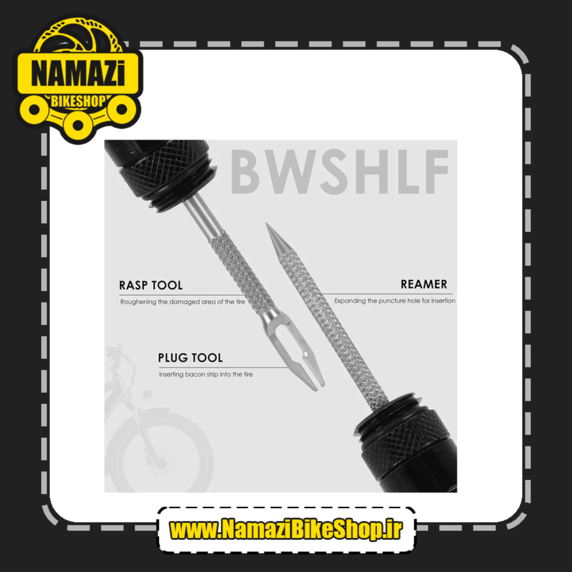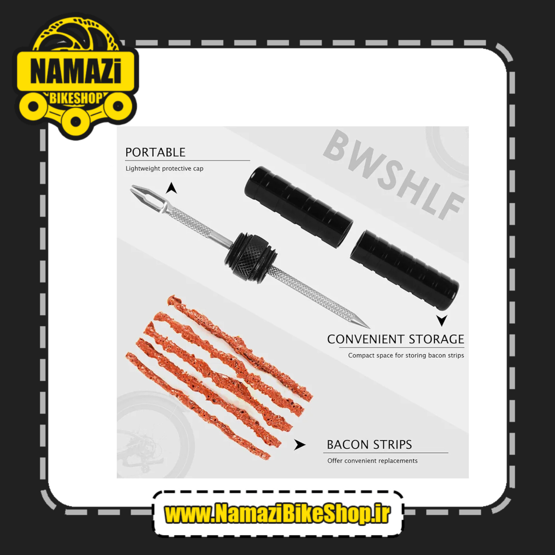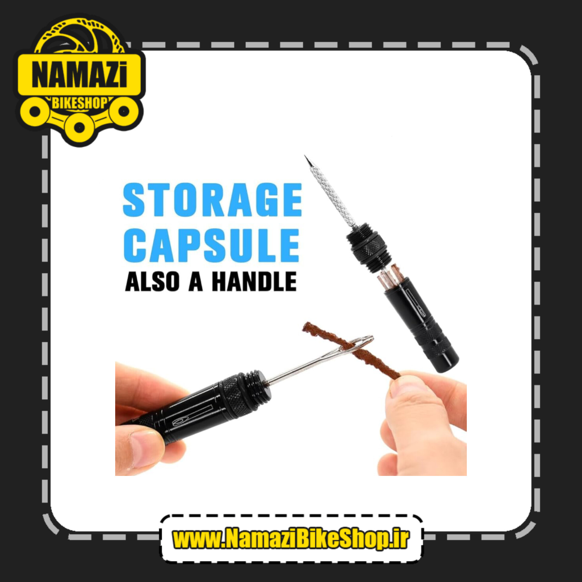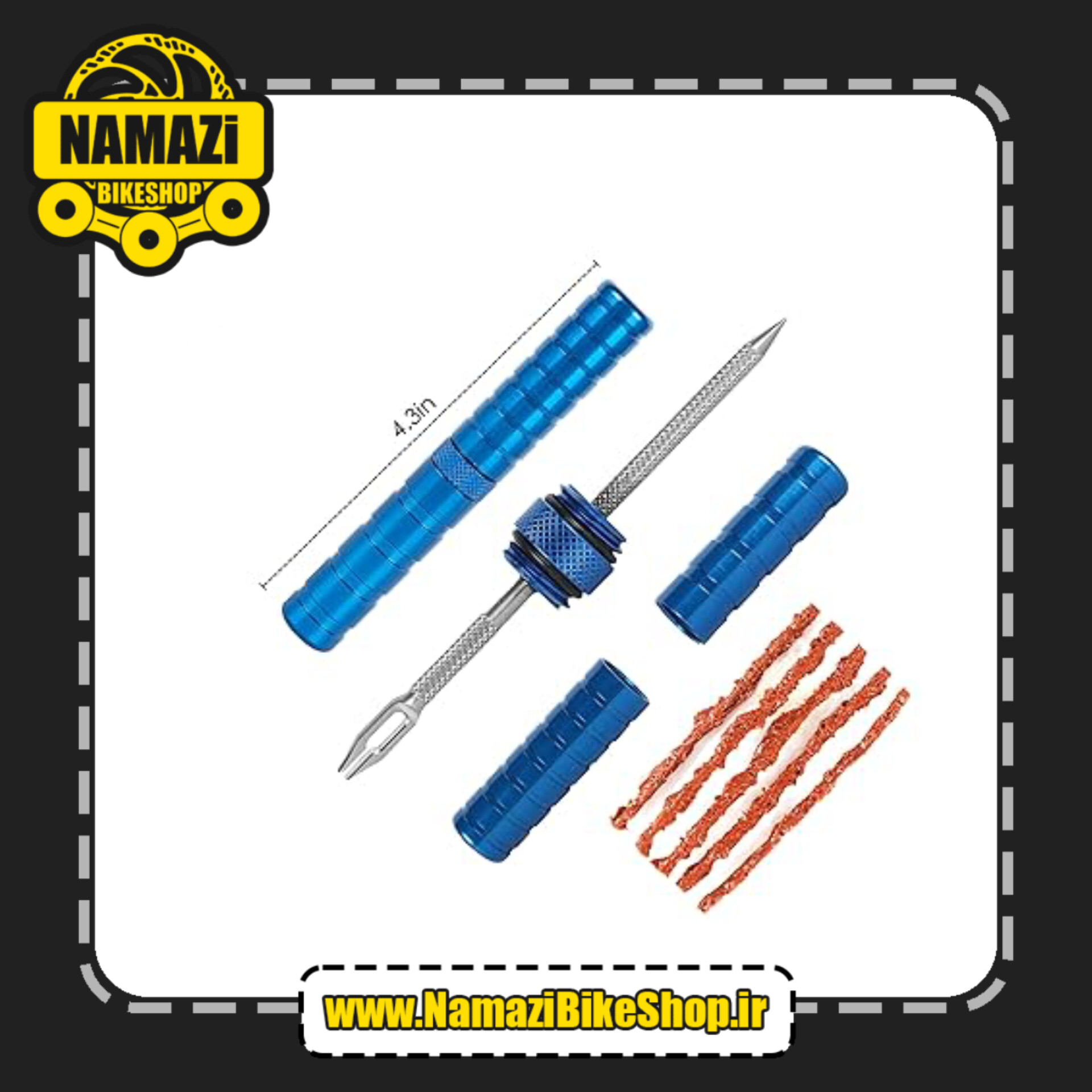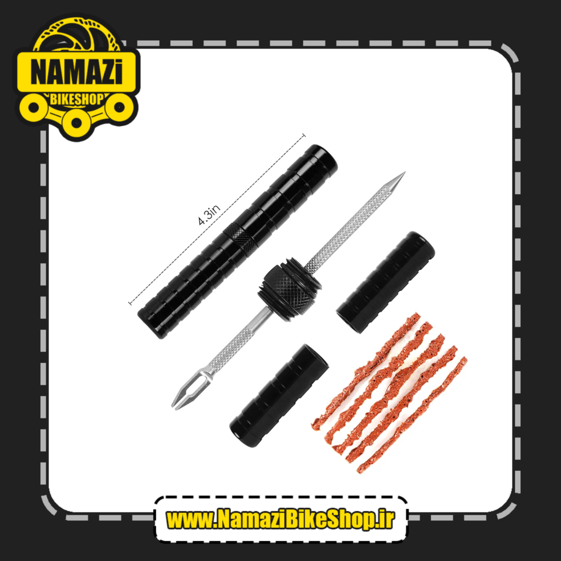 ✅ ابزار تعمیر تایر دوچرخه از آلیاژ آلومینیوم ساخته شده و نوارها از لاستیک ولکانیزه شده ساخته شدهاند و سوزن سوراخکاری و درپوش تایر به طور ایمن نگهداری میشوند.
